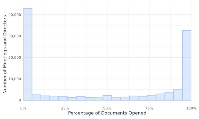 A small group of directors engage with materials well in advance of each meeting, another small group rarely engages at all, and the majority fall somewhere in the middle, but not in a predictable way. Rather than being moderately prepared each time, most directors swing between extremes. They might review every document in one meeting cycle, then engage minimally in the next.