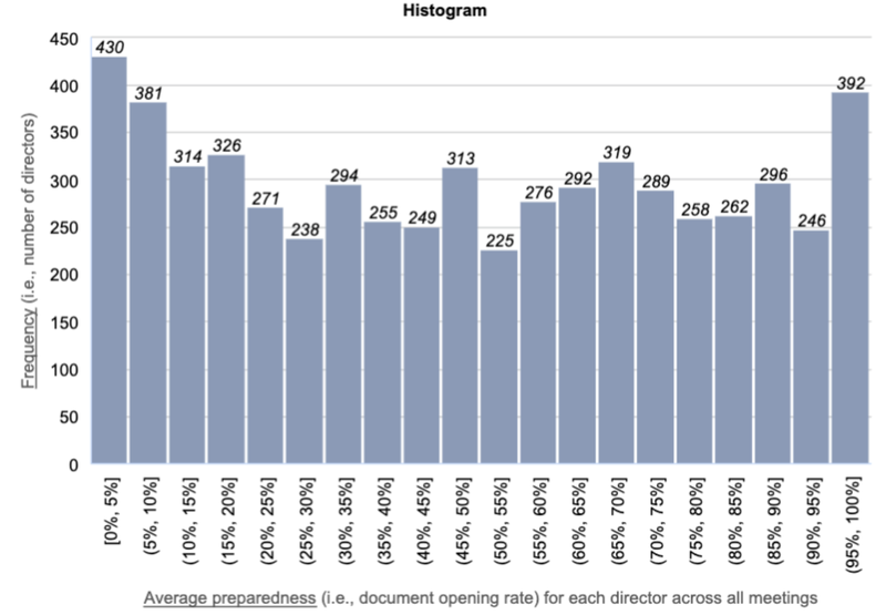 - On average, directors are only partially prepared: The data does not suggest a baseline of full preparation across meetings.